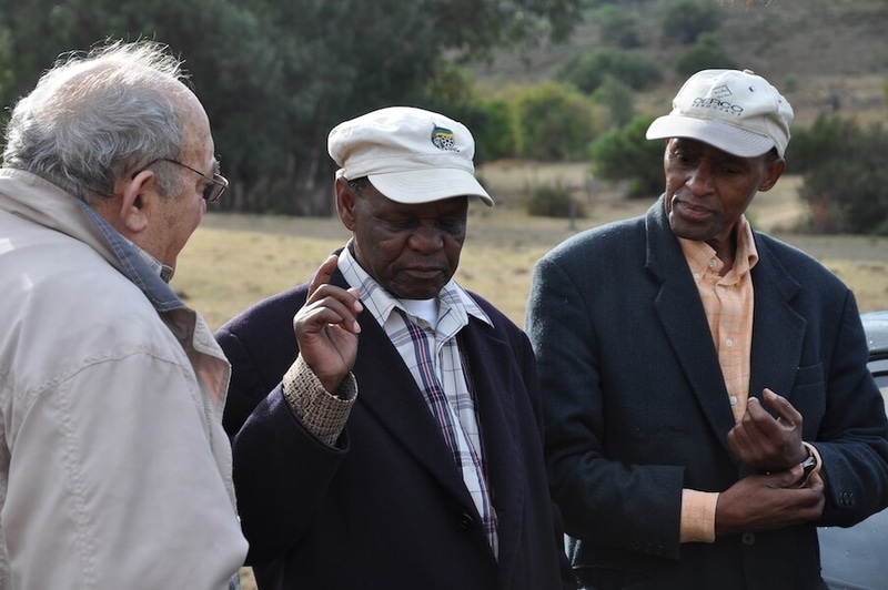 Denis together with Alfred Willie and Sandi Sijake at the Mamre site of the first MK training camp in which they all participated.
